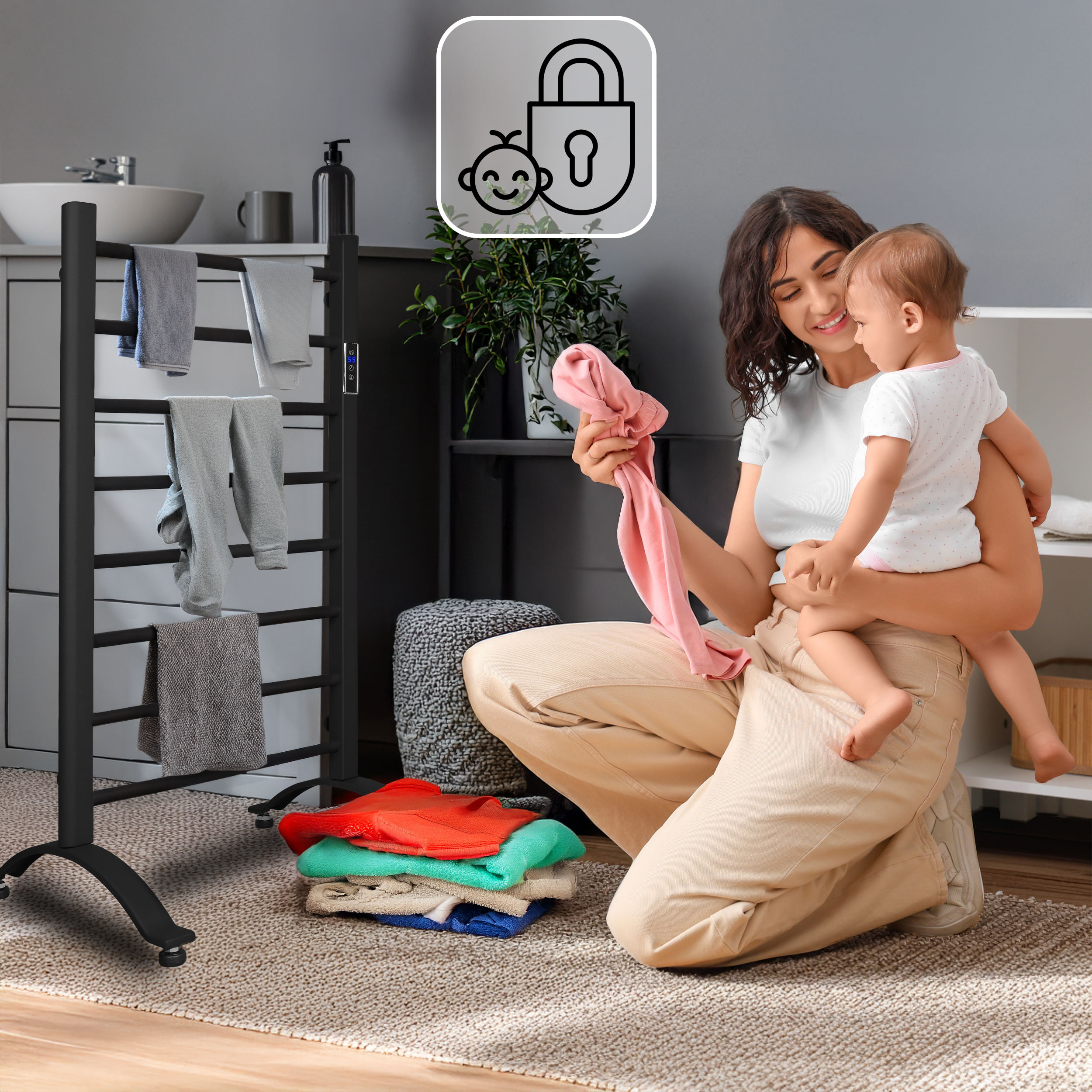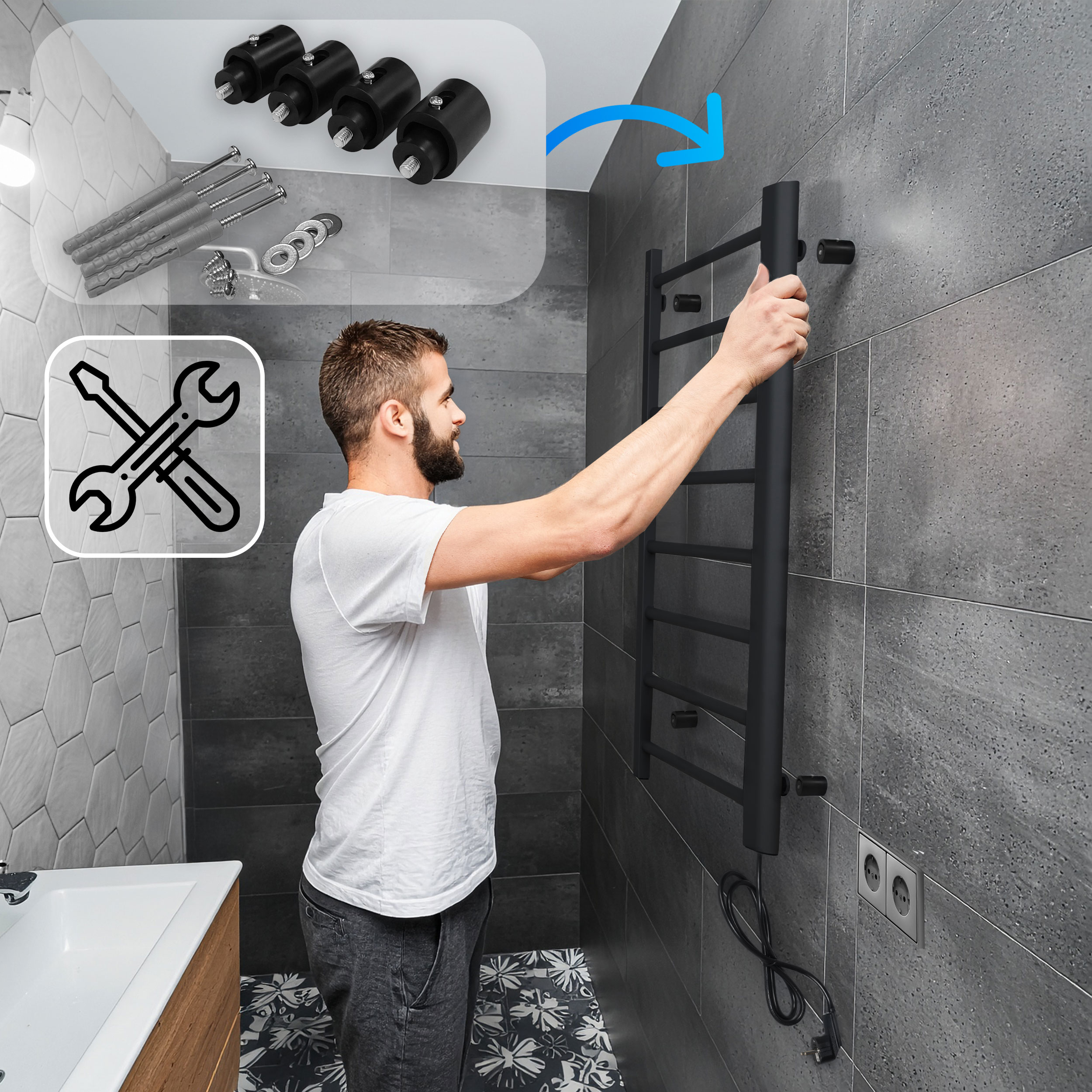 - ✔️Optymalna odległość prętów grzejnych - pozwala na swobodne zawieszania ręczników lub prania