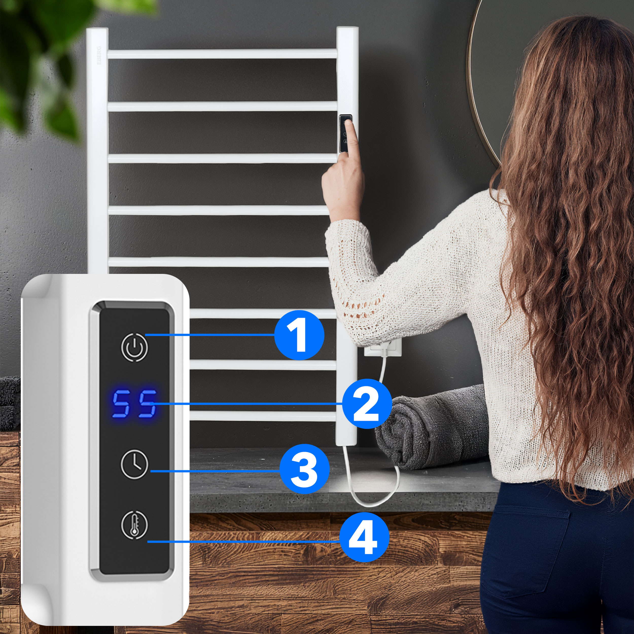 Dzięki funkcji timera możesz ustawić czas pracy grzejnika od 1 do 8 godzin, regulując go co godzinę jednym kliknięciem. To proste rozwiązanie, które zwiększa komfort i pozwala oszczędzać energię.
