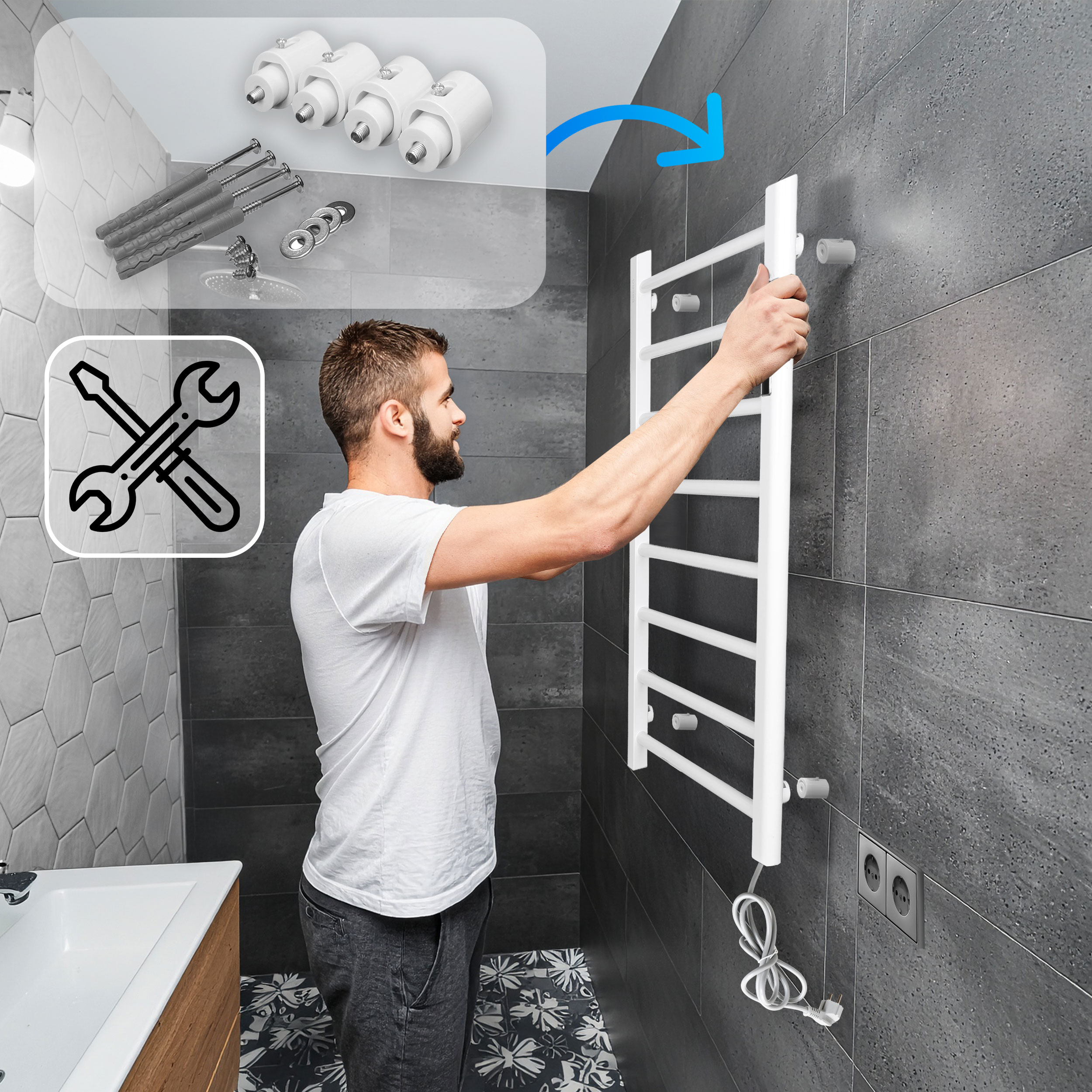 - ✔️Optymalna odległość prętów grzejnych - pozwala na swobodne zawieszania ręczników lub prania